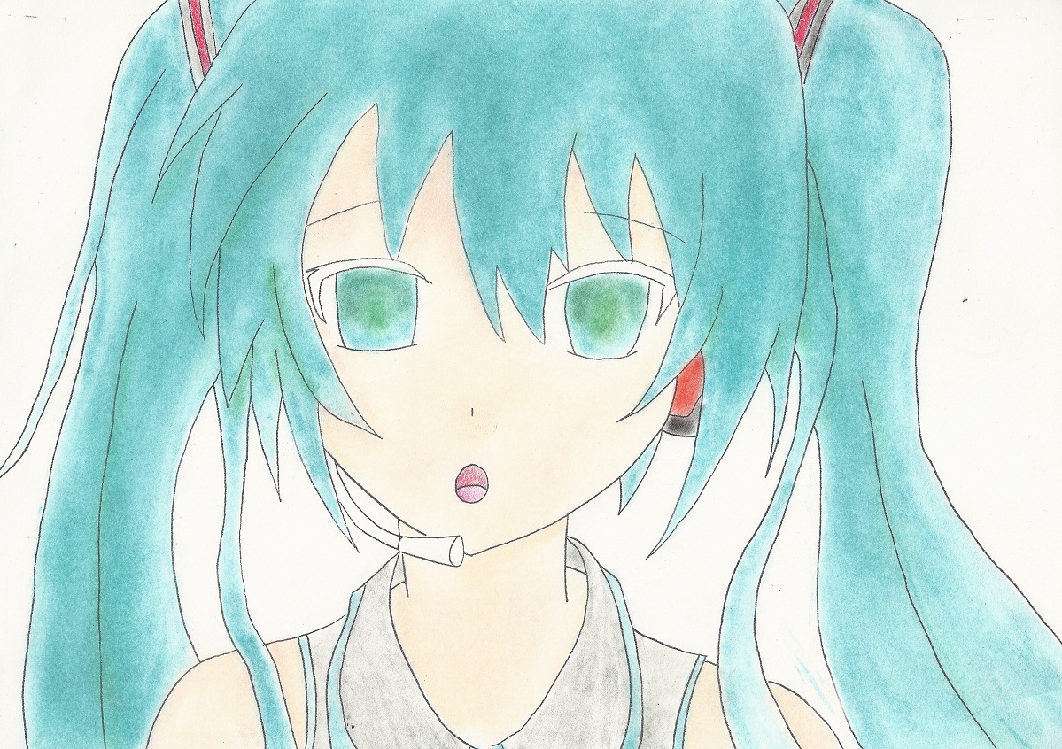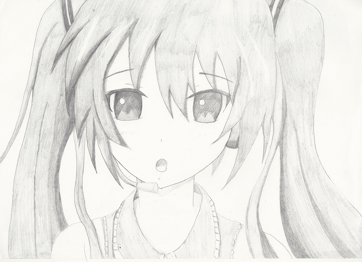 初音ミクを描いてみた。(ver.白黒)