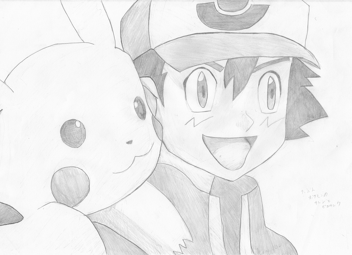 サトシ+ピカチュウを描いてみた